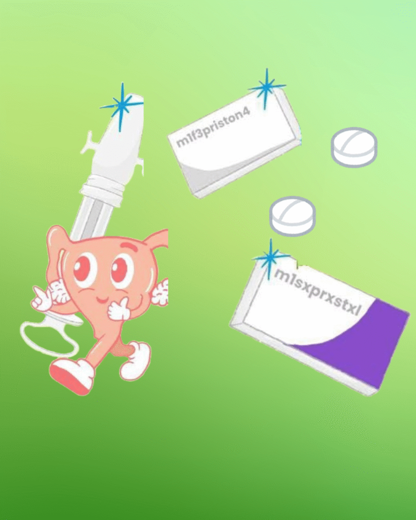 – Medicamentos: ¡Qué crees! si se puede abortar con medicamentos. Tus fieles acompañantes: la Mifepristona y el Misoprostol son quienes te guiarán en este proceso. 💊